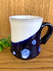 瑠璃色の釉薬に白の水玉模様をつけています。